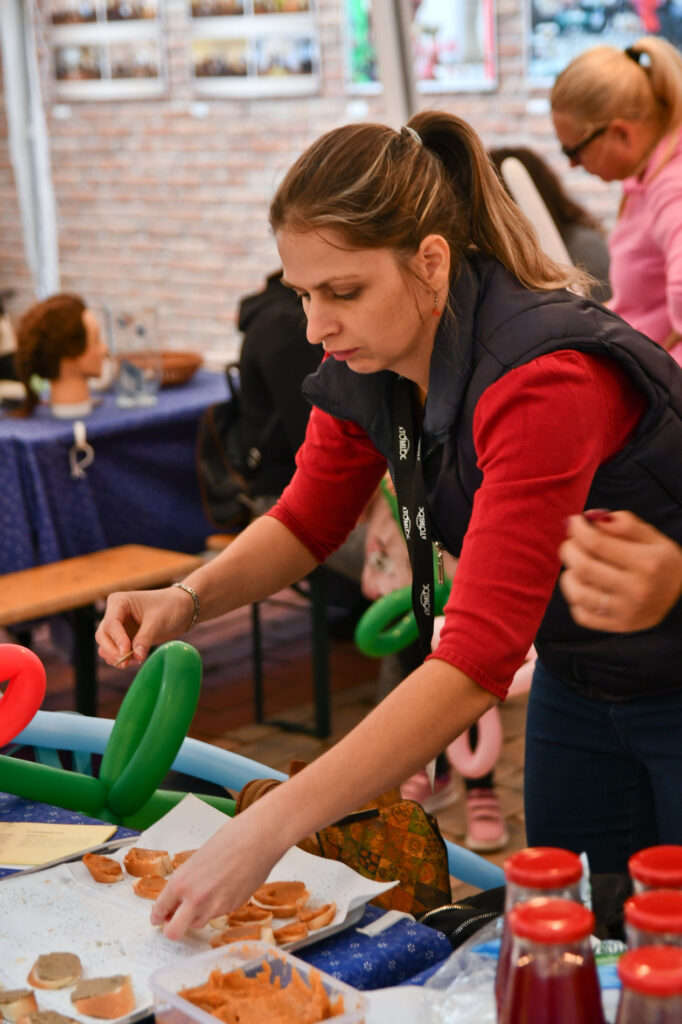 Látványsütödénk sokakat vonzott. A Nőklub szakavatott asszonyai érett szilvából főzték a kiszit, helyben sütött tököt kínáltak mellé. Mohácsi Bernadett egészséges ivóleveket és zöldségkrémeket kóstoltatott, majd recepteket osztott meg a hozzá érkező érdeklődőkkel. Természetes, gyógynövényekből készített krémek, kozmetikumok várták a kézműves udvar látogatóit, hogy a gyümölcs és zöldségfaragás után a bőrápolásról is tanulhassanak. De kaphattak lufiból hajtogatott ajándékot, hennát, csillámtetkót, gyönyörű fonott frizurát is. A népi játszótéren a tanyasi élet hangulatában játszhattak a gyerekek, a múzeum előtt pedig kipróbálhatták a lovaglást a Szandi Lovasfarm jóvoltából.